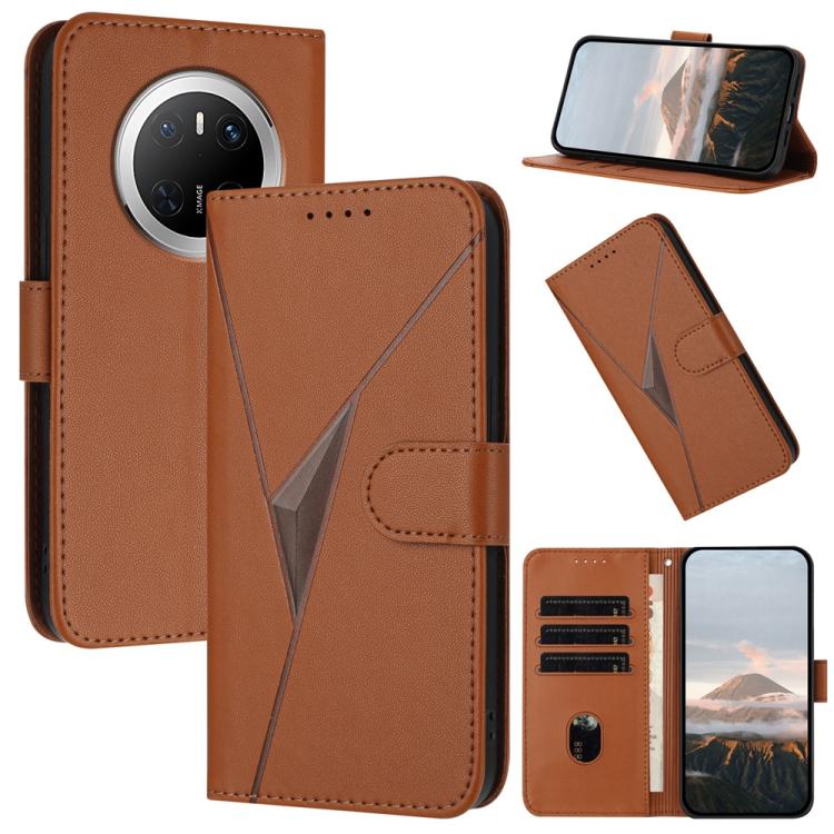 Funda de Cuero para Huawei Mate 70 con Cierre de Hebilla y Diseño Triangular (Marrón)