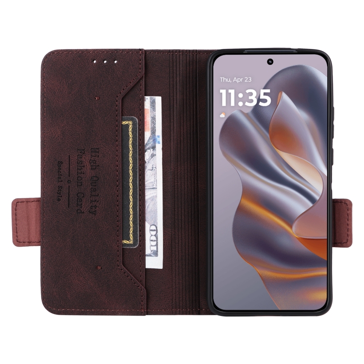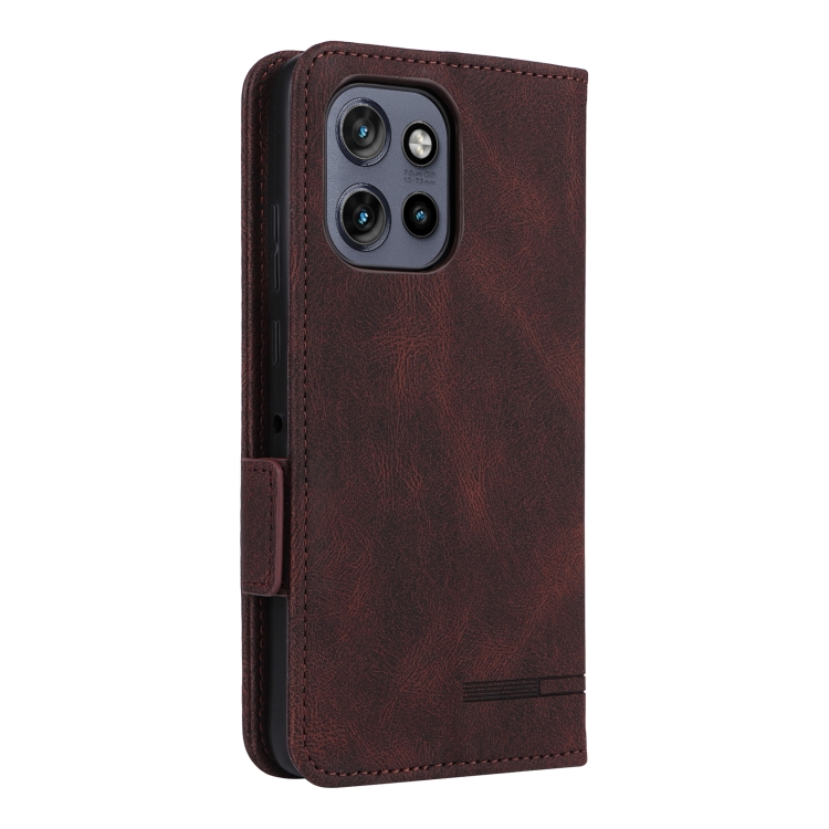 Funda de Cuero con Cierre Magnético para Motorola Edge 50 Neo 5G (Marrón)