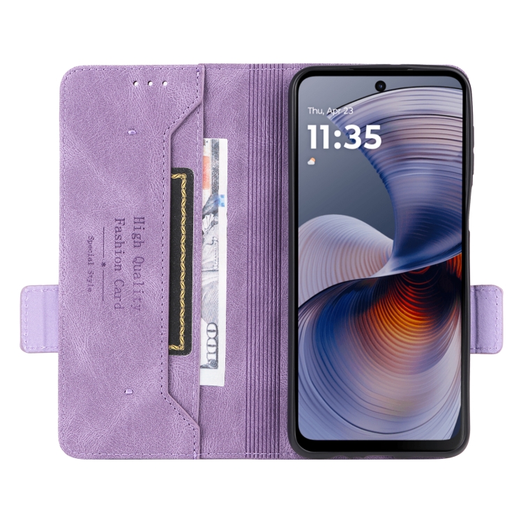 Funda de Cuero con Cierre Magnético para Motorola Moto G55 5G (Morado)