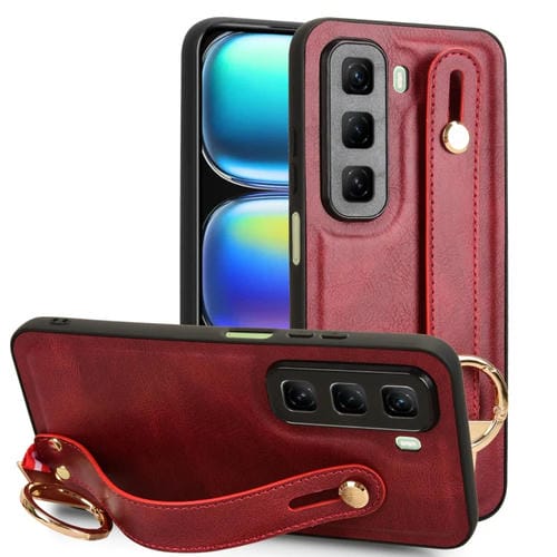 Funda de Cuero con Correa para el Cuello para Infinix Hot 50 5G (Rojo)