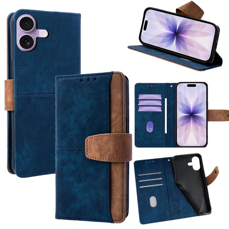 Funda de cuero con costuras de color y bloqueo RFID para iPhone 17 (azul)