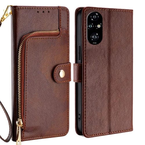 Funda de Cuero con Cremallera para Honor 200 Pro 5G (Marrón)