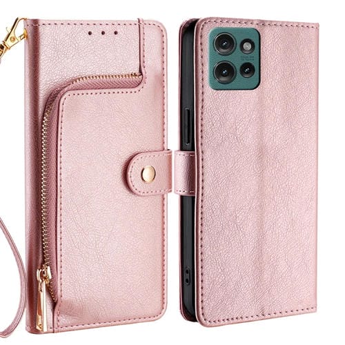 Funda de Cuero con Cremallera para Motorola Edge 50 5G (Oro Rosa)