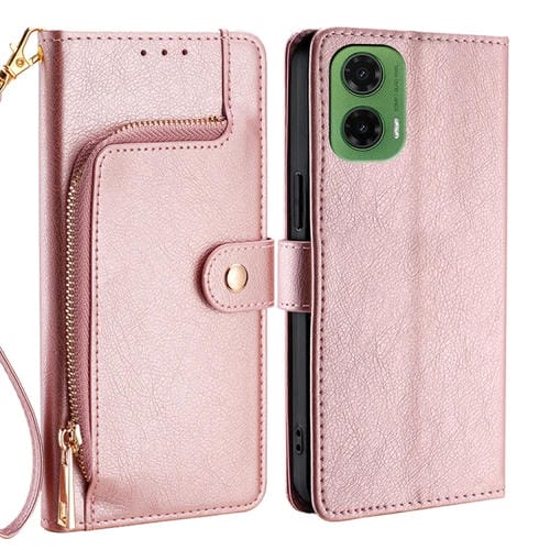 Funda de Cuero con Cremallera para Motorola Moto G35 5G (Oro Rosa)