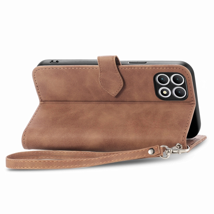 Funda de Cuero para T-Mobile T Phone 2 Pro 5G con Cremallera y Diseño de Flores (Marrón)