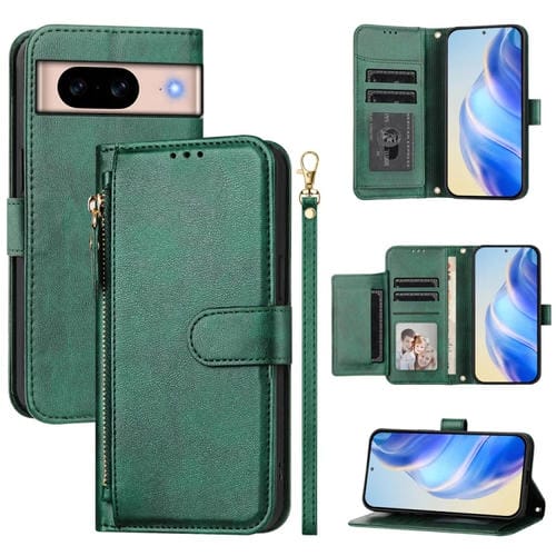 Funda de Cuero con Cremallera y Ranuras para Tarjetas para Google Pixel 8A (Verde)