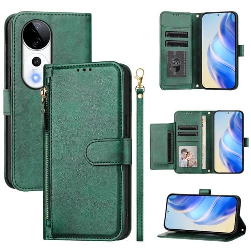 Funda de Cuero con Cremallera y Ranuras para Varias Tarjetas para Vivo S19 Pro (Verde)