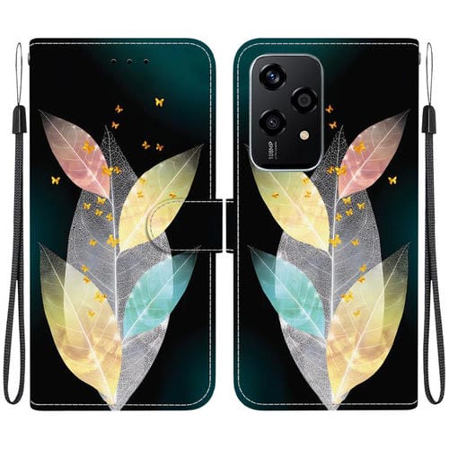 Funda de Cuero con Dibujo a Color y Textura de Cristal Global para Honor 200 Lite (Hojas de Colores)