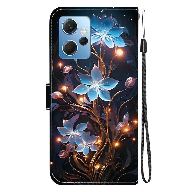 Funda de Cuero con Dibujo de Colores y Textura de Cristal Global para Redmi Note 12 4G (Flor de Linterna Pequeña)