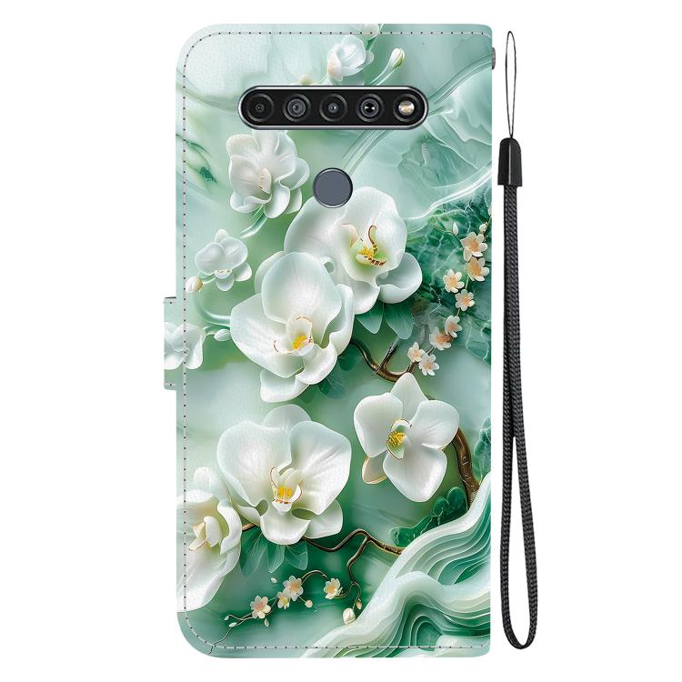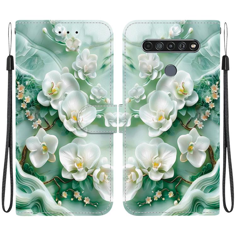 Funda de Cuero LG K61 con Dibujo de Colores y Textura de Cristal (Flores de Jade)