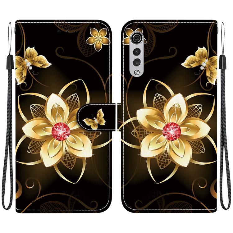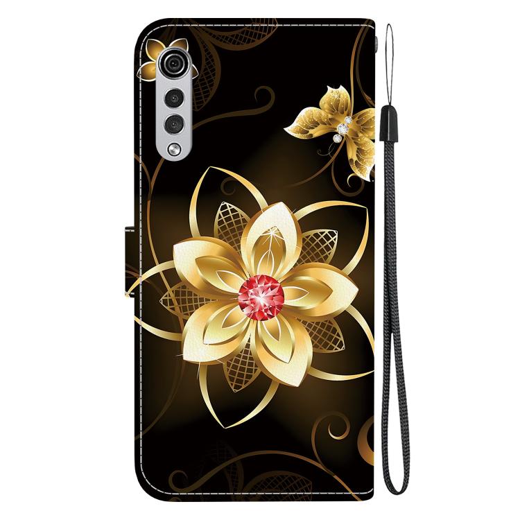 Funda de Cuero LG Velvet 5G/G9 4G con Dibujo de Colores y Textura de Cristal (Flor Dorada)