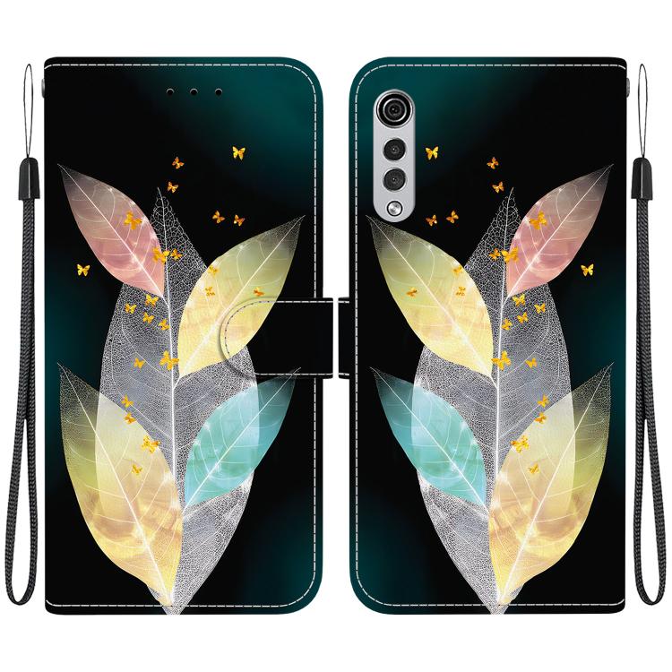 Funda de Cuero LG Velvet 5G/G9 4G con Dibujo de Hojas de Colores y Textura Cristal