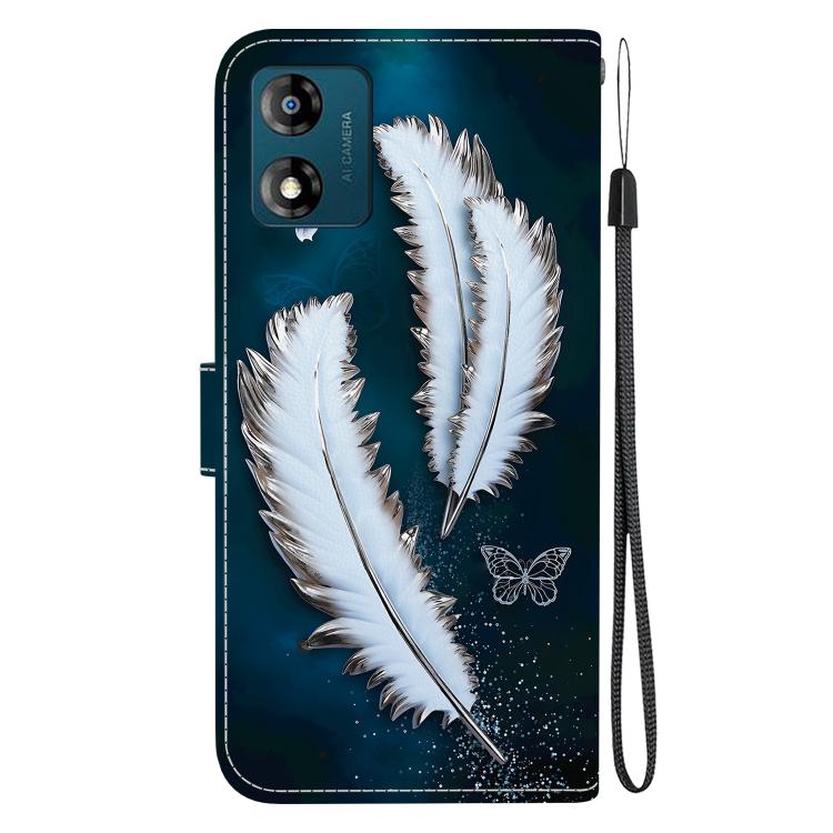 Funda de Cuero Motorola Moto E13 con Dibujo y Textura de Cristal (Plumas de Mariposa Blancas)
