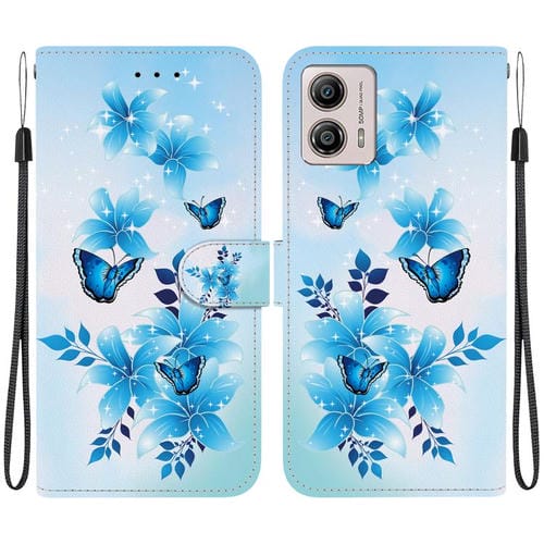 Funda de Cuero para Motorola Moto G13/G23/G53 con Dibujo y Textura de Cristal (Mariposas Azules)