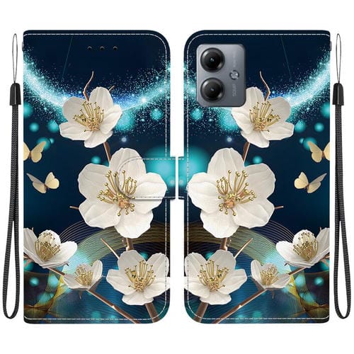 Funda de Cuero con Dibujo de Colores y Textura de Cristal para Motorola Moto G14 (Magnolia)