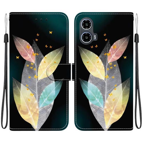 Funda de Cuero para Motorola Moto G34 5G con Dibujo y Textura de Cristal (Hojas de Colores)