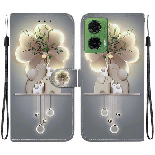 Funda de Cuero para Motorola Moto G35 con Dibujo de Colores y Textura de Cristal (Elefantes)