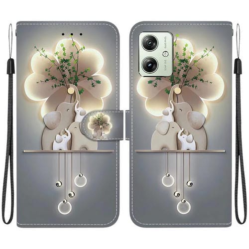 Funda de Cuero para Motorola Moto G54 con Dibujo de Colores y Textura de Cristal (Elefantes)