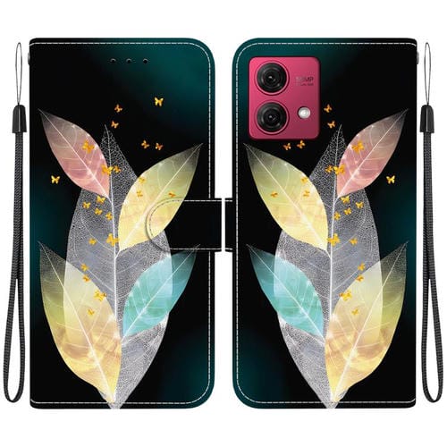 Funda de Cuero para Motorola Moto G84 con Dibujo y Textura de Cristal (Hojas de Colores)