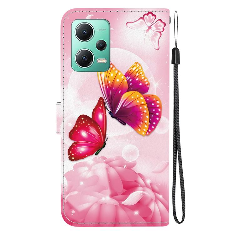 Funda de Cuero con Dibujo de Colores y Textura de Cristal para Redmi Note 12 5G/Poco X5 (Mariposas Rosas)