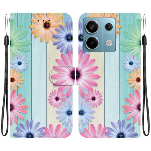Funda de Cuero con Dibujo de Colores y Textura de Cristal para Redmi Note 13 Pro 5G (Girasoles)