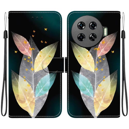 Funda de Cuero para Tecno Spark 20 Pro+ 4G con Dibujo y Textura de Cristal (Hojas de Colores)