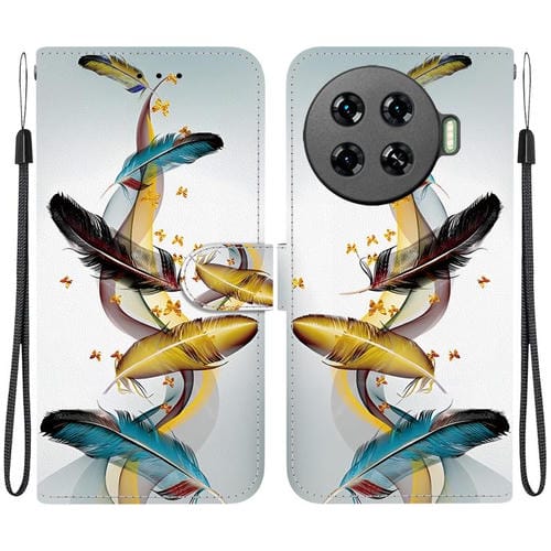 Funda de Cuero para Tecno Spark 20 Pro+ 4G con Dibujo de Colores y Textura de Cristal (Plumas de Mariposa Doradas)