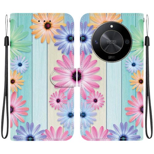 Funda de Cuero Honor X9B/Magic6 Lite con Dibujo de Colores y Textura de Cristal (Girasoles)