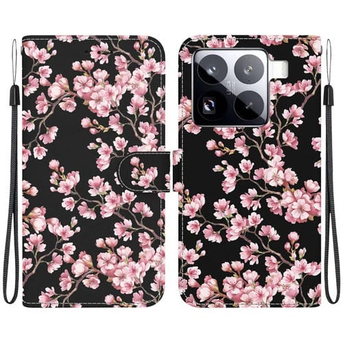 Funda De Cuero Con Dibujo De Colores Y Textura De Cristal Para Xiaomi 15 Pro (Flor De Ciruelo)