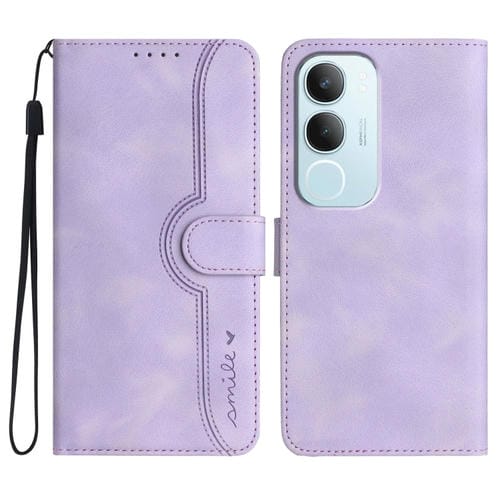 Funda de Cuero con Diseño de Corazón para Teléfono Vivo Y19S (Morado)