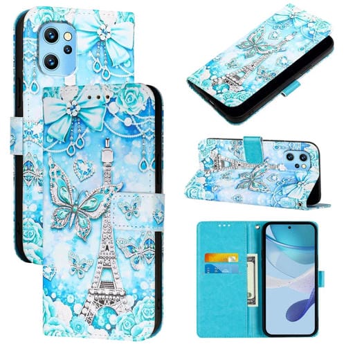 Funda de Cuero para Umidigi Power 7 Max con Diseño Mariposa en Torre (Liso)