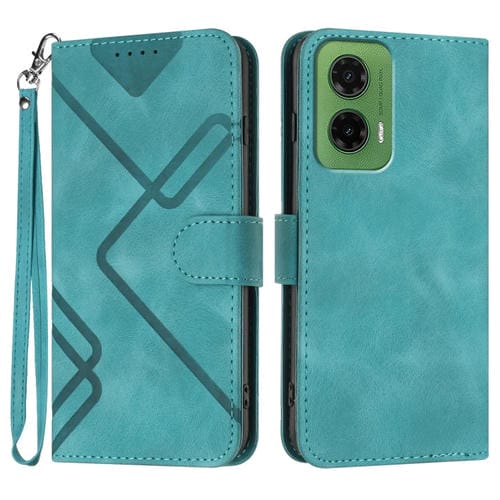 Funda de Cuero para Motorola Moto G35 con Diseño de Líneas y Tacto Suave (Azul Claro)