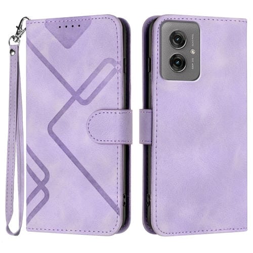 Funda de Cuero Motorola Moto G55 Diseño de Líneas Tacto Suave (Morado Claro)
