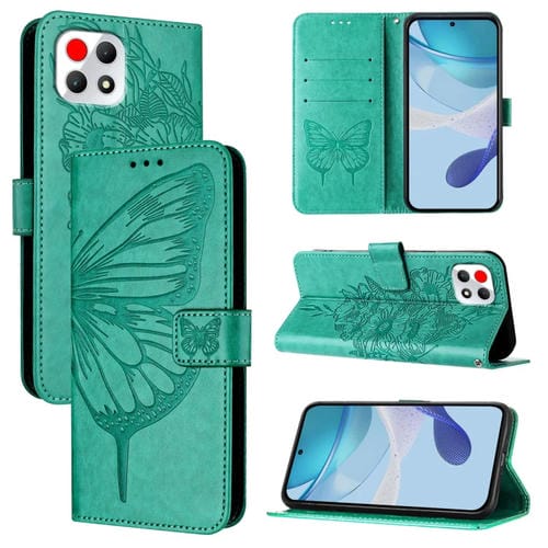 Funda de Cuero para T-Mobile Revvl 7 5G con Diseño de Mariposa en Relieve (Verde)
