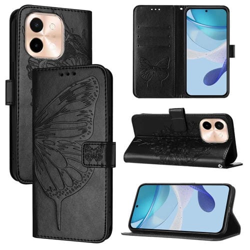 Funda de Cuero con Diseño de Mariposa En Relieve para Vivo Y28 4G (Negra)