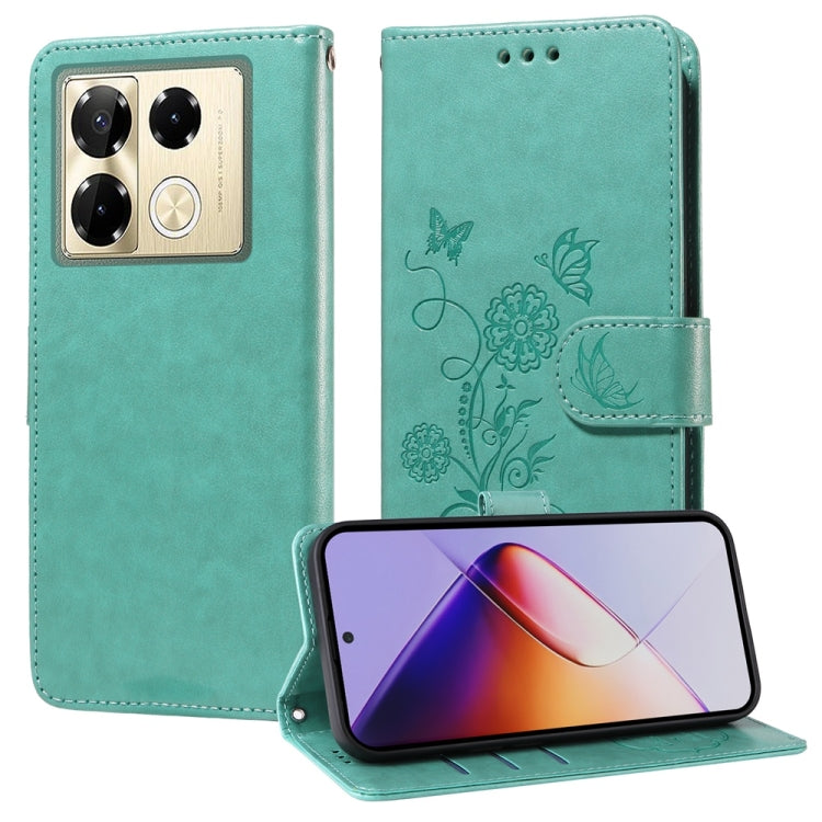 Funda de Cuero para Infinix Note 40 Pro 4G/5G y Pro+ con Diseño Mariposas y Flores (Verde)