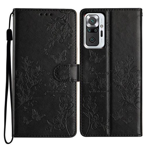 Funda de Cuero con Diseño de Mariposas y Flores para Redmi Note 10 Pro Max (Negra)