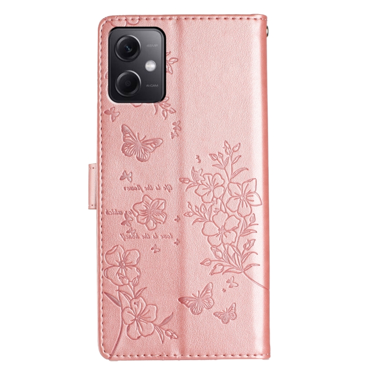 Funda de Cuero con Diseño de Mariposas y Flores para Redmi Note 12 5G (Oro Rosa)