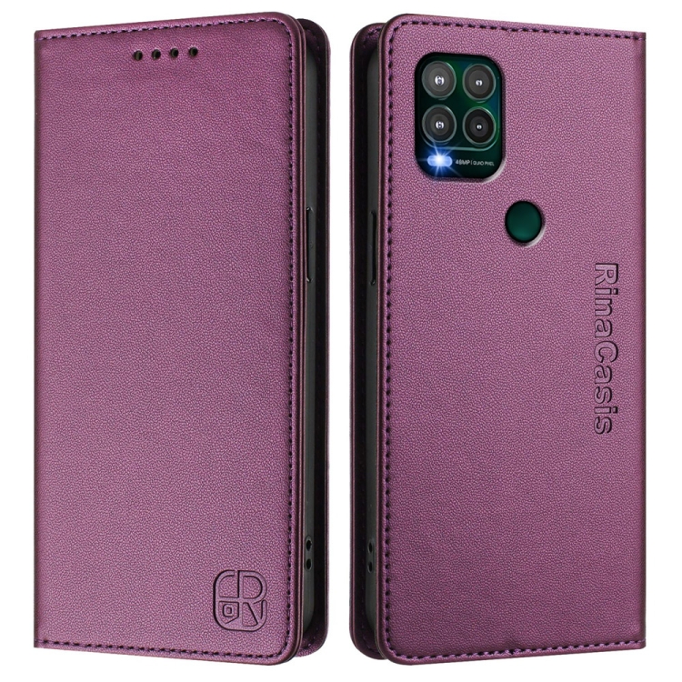 Funda de Cuero para Motorola Moto G Stylus 5G 2021 Rc01 con Doble Pliegue y Succión Magnética (Violeta)