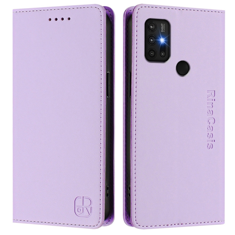 Funda de Cuero Motorola Moto G30/G20/G10 Rc01 con Doble Pliegue y Succión Magnética (Morado Claro)