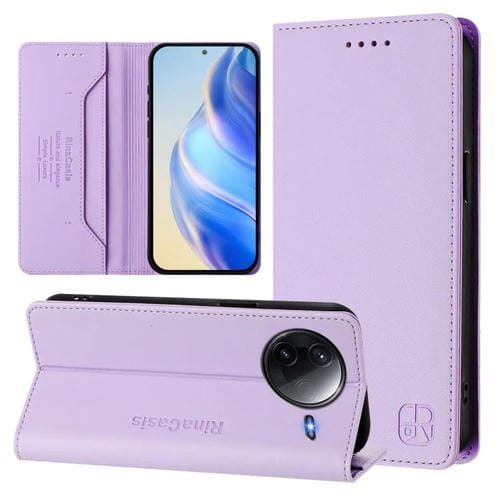 Funda de Cuero con Doble Pliegue y Succión Magnética para Redmi K80/K80 Pro Rc01 (Morado Claro)