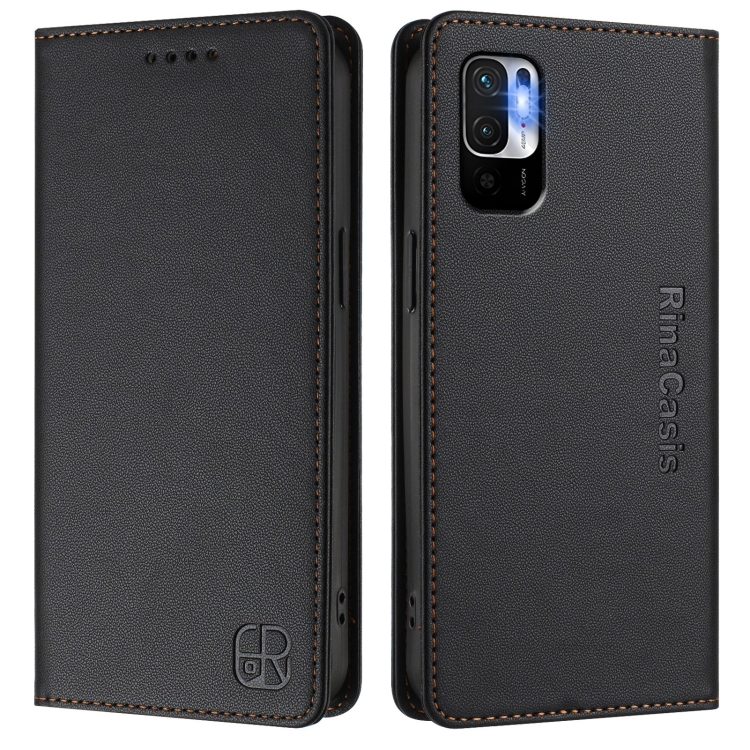 Funda de Cuero con Doble Pliegue y Succión Magnética para Redmi Note 10 5G/Note 10T 5G Rc01 (Negra)