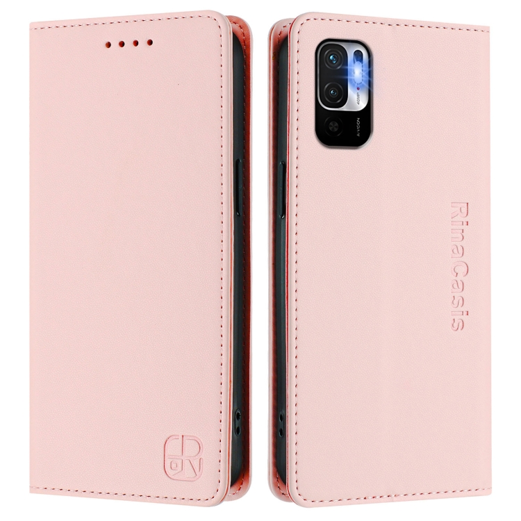 Funda de Cuero con Doble Pliegue y Succión Magnética para Redmi Note 10 5G/Note 10T 5G Rc01 (Rosa)