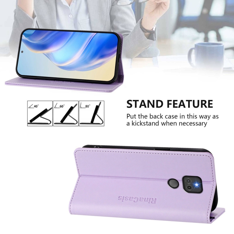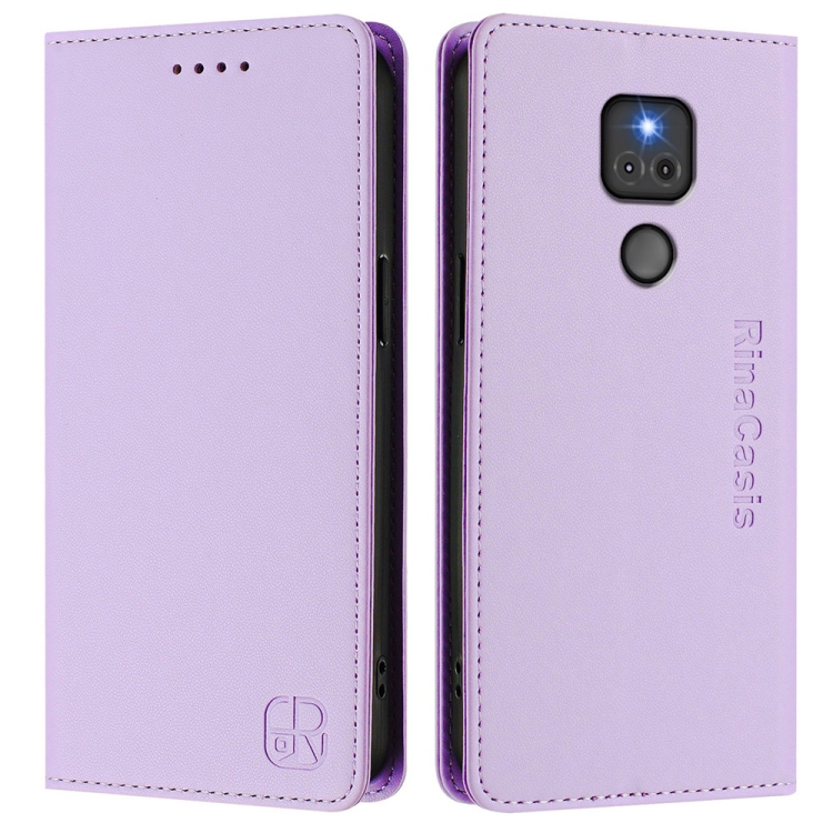 Funda de Cuero Motorola Moto G Play 2021 Rc01 con Doble Pliegue y Succión Magnética (Morado Claro)