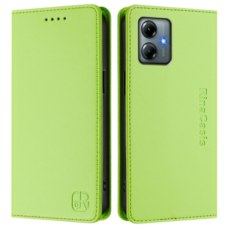 Funda de Cuero Motorola Moto G Play 2025/G Power 2025 Rc01 con Doble Pliegue y Succión Magnética (Verde Hierba)