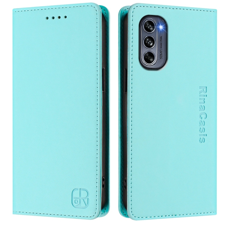 Funda de Cuero Motorola Moto G62 5G con Doble Pliegue y Succión Magnética (Verde Menta)