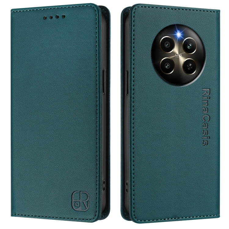 Funda de Cuero con Doble Pliegue y Succión Magnética para Teléfono Realme P1 Pro Rc01 (Verde Oscuro)