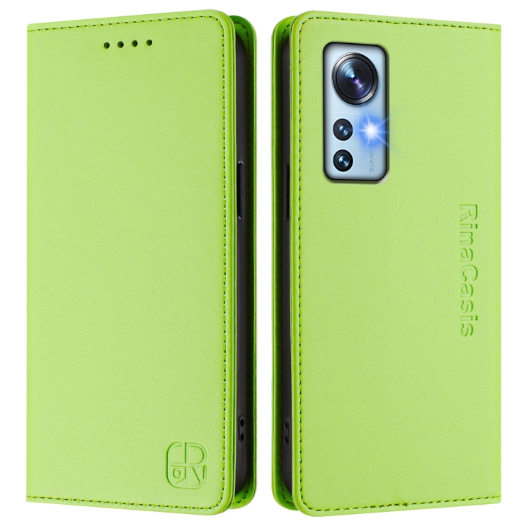 Funda de Cuero con Doble Pliegue y Succión Magnética para Teléfono Xiaomi 12 5G / 12X 5G / 12S 5G Rc01 (Verde Hierba)