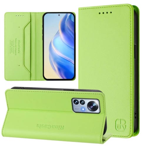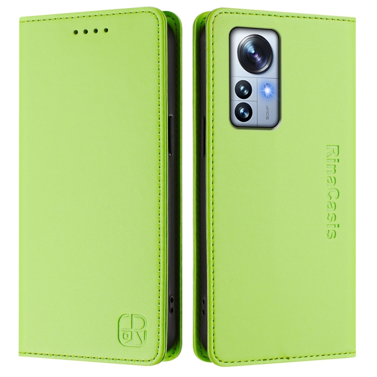 Funda de Cuero con Doble Pliegue y Succión Magnética para Teléfono Xiaomi 12 Pro/12S Pro Rc01 (Verde Hierba)