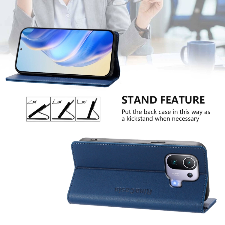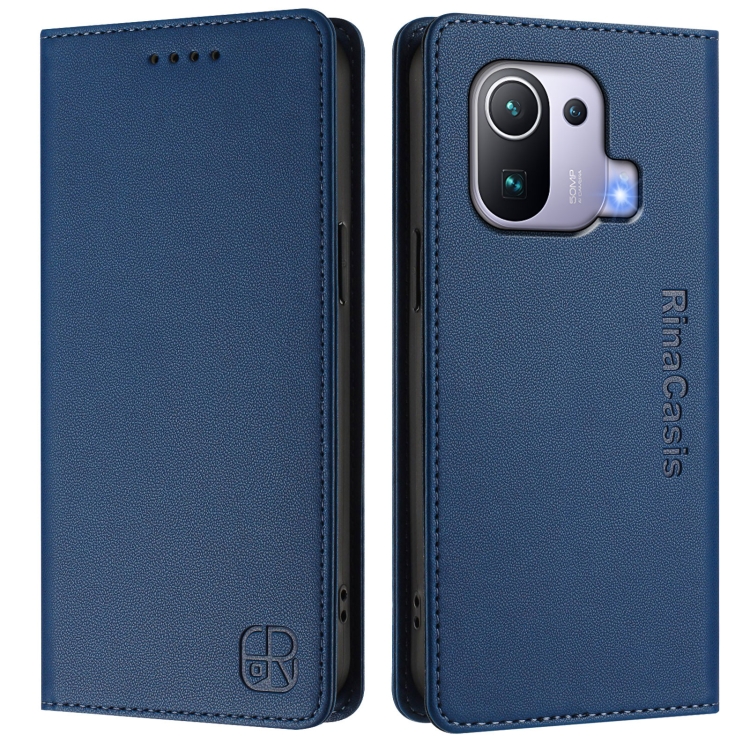 Funda de Cuero con Doble Pliegue y Succión Magnética para Teléfono Xiaomi Mi 11 Pro Rc01 (Azul Oscuro)